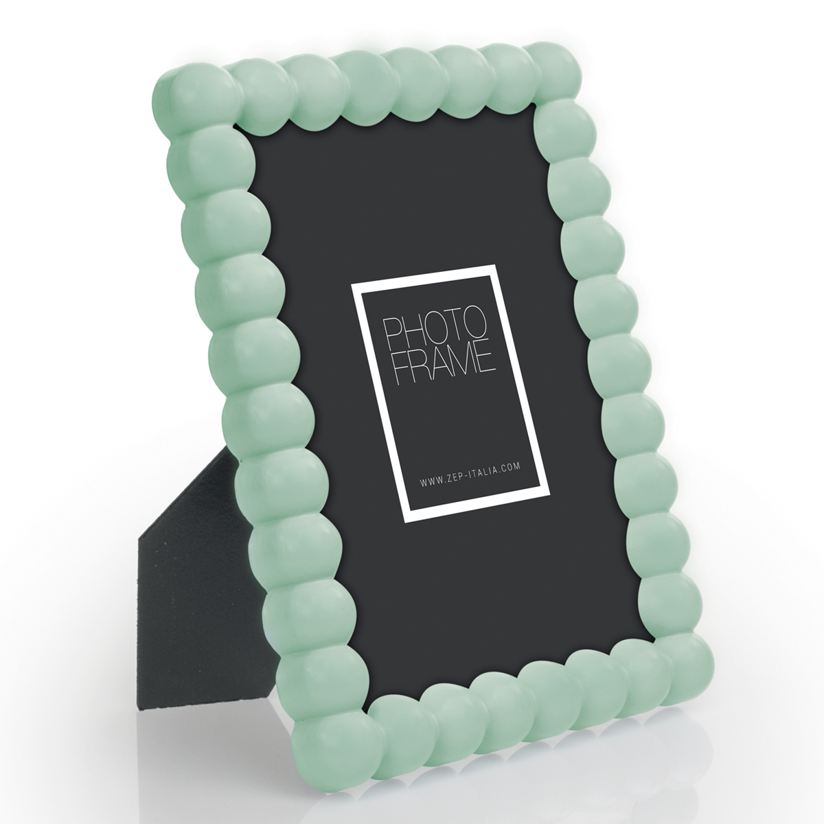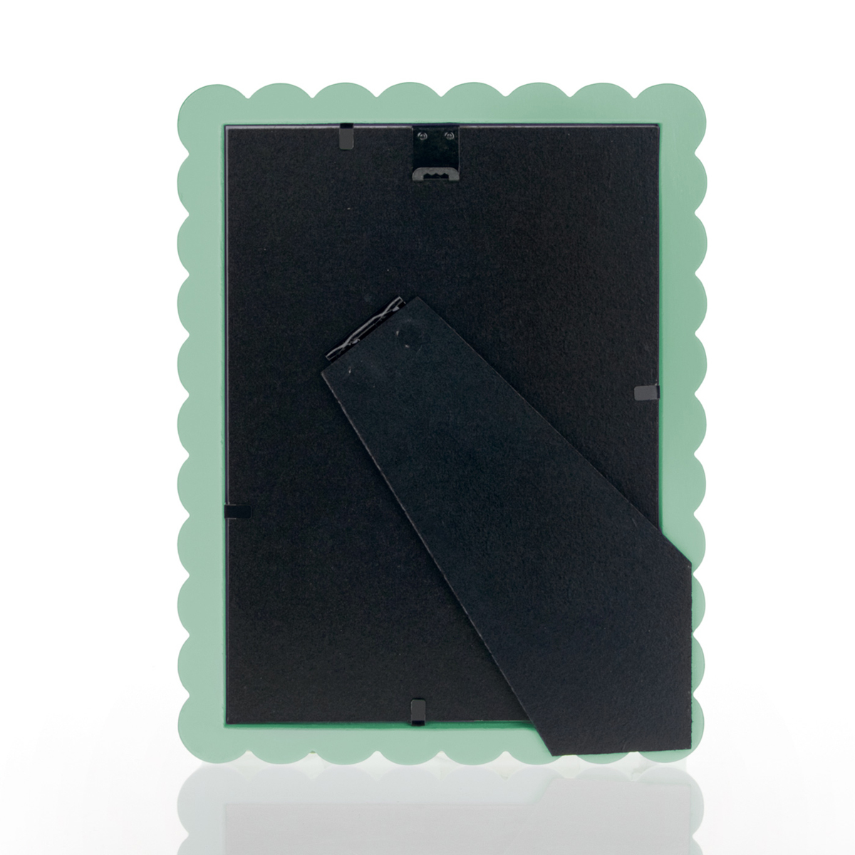 Bilderrahmen aus Holz, pastellgrün, abgerundetes Profil mit geometrischer Verzierung, Rückseite aus MDF